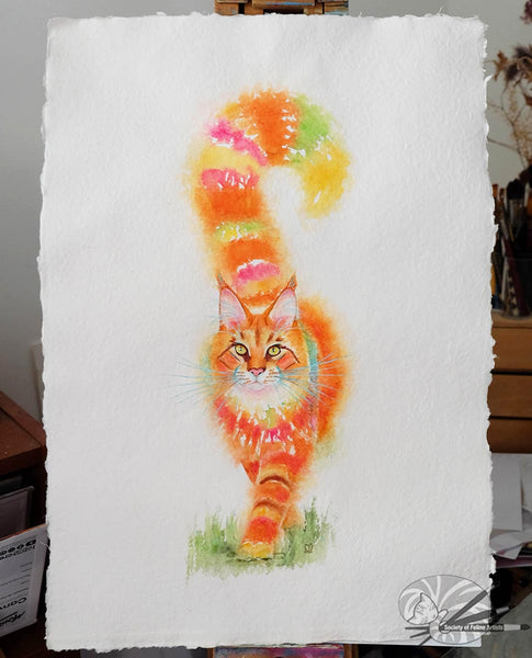 There’s something magical about the moment a cat decides to walk straight towards you, tail high, completely sure of herself. That’s the feeling I wanted to bottle in this painting.
