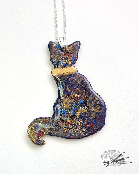 Get two gorgeous looks in one with this unique, handmade reversible cat necklace. This beautiful pendant is hand crafted with resin, rich pigments, and genuine gold leaf, making every piece completely one-of-a-kind.