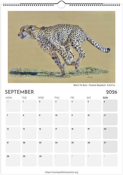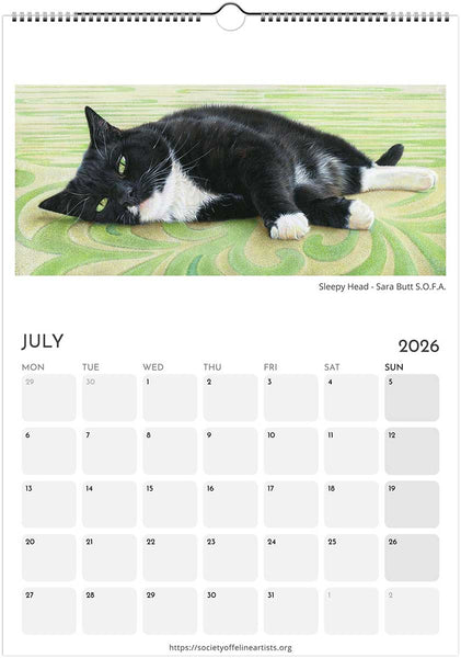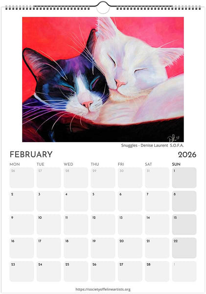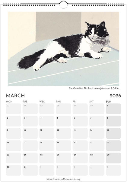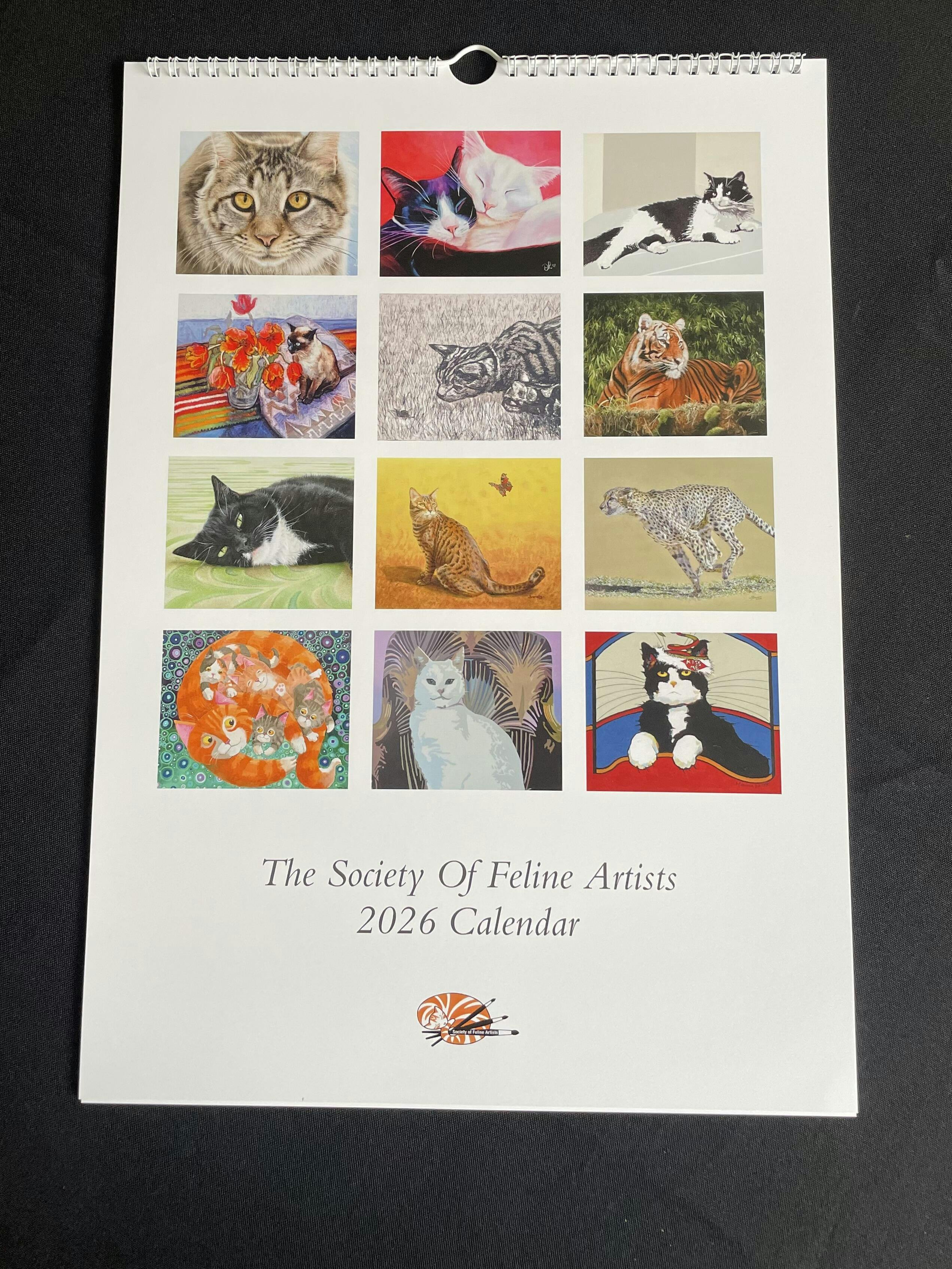 The limited edition S.O.F.A. 2026 Wall Calendar features twelve original paintings, by twelve different members of the society. Each one captures the unique personality of a different cat. It’s a delightful journey through the year, bringing a dose of feline charm and colour to your home, one month at a time.